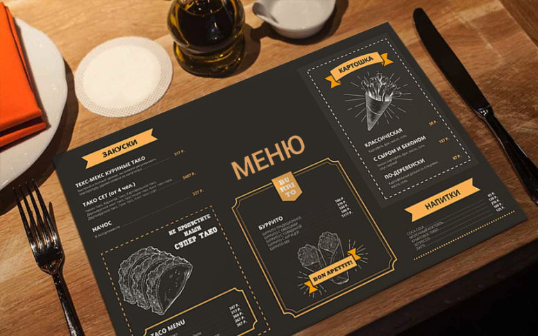 Плейсмат или placemat это подложка под посуду, которая помогает держать стол в порядке и поддерживает стиль заведения. Рассказываем, где плейсматы полезны, какими бывают, и что учесть при выборе бумаги, макета и тиража.